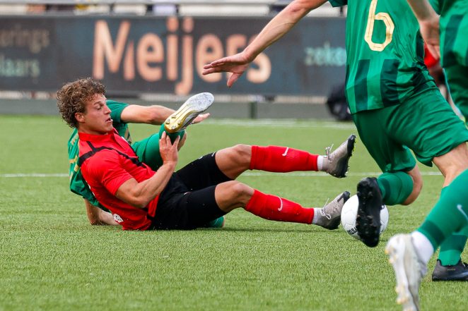 Het was voor Quick Boys coach Poldervaart in de voorbereiding al een flinke puzzel geworden; een deel van de succesvolle selectie vertrok onder andere richting het betaalde voetbal. Van de elf basisspelers waren zaterdagmiddag zeven nieuwe namen te noteren in de voorkeursopstelling. Levi van Duijn droeg (mede) daarom voorlopig de aanvoerdersband, maar de jongeling is daar nog niet zeker van.