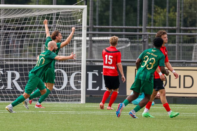 Het meegereisde publiek uit Katwijk kon na ruim 95 minuten opgelucht ademhalen. De eerste zware horde was genomen in Amsterdam. AFC kon de kampioen van vorig seizoen, met veel mutaties, geen enkele pijn doen. Kijk hier voor alle uitslagen, de stand en het programma in de Tweede divisie