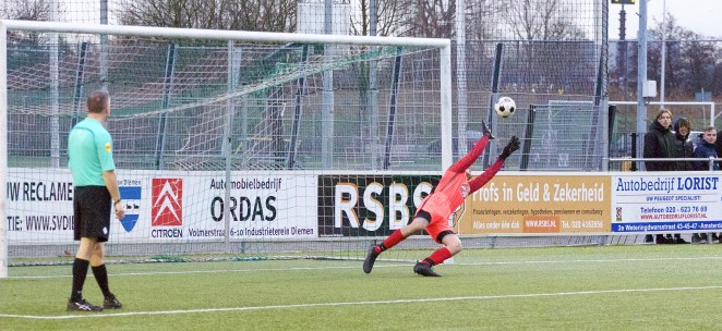 Tien minuten later kwam Diemen alsnog terug op gelijke hoogte. Een lichte overtreding was voldoende voor scheidsrechter Hussaarts om de bal op de stip te leggen. Kool leek zich tot held van de middag te kronen door een strafschop van Marco Moelee uit de bovenhoek te vissen, maar de doelman kwam te vroeg van zijn lijn. De strafschop moest overgenomen worden en nu was Moelee wel trefzeker: 2-2. Dat was tevens de eindstand.