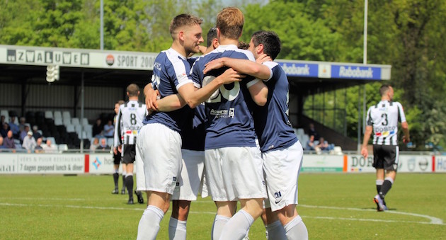 De Amsterdammers kwamen halverwege de eerste helft aan de leiding in Vlaardingen. Ron Rosenhart stelde Jaap Smeeing in staat om de openingstreffer te maken. Vlak voor rust zorgde Raoul Gillet voor de gelijkmaker, waarna Ricardo Merrelaar de thuisploeg na ruim een uur spelen zelfs aan de leiding bracht. Een volley van Rosenhart, uit een goede voorzet van Max van Wakeren, stelde het punt veilig voor Swift.