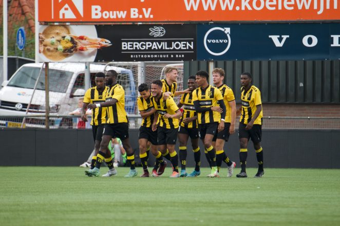 Maar de bezoekers werden daarna wel wat gevaarlijk en bij de eerstvolgende kans was het raak. Een vrije trap werd van richting veranderd, waarna Darryl Bäly helemaal vrij de 1-1 binnen kon schieten. En met 18 minuten op de klok werd het plotseling ook nog 1-2. Doelman Jaimy Schaap raakte bij een duel in de zestien het hoofd van Joël Donald. De goalie kreeg geel en de bal ging op de stip, Butter schoot beheerst raak. Lang kon OFC echter niet van de voorsprong genieten, slechts een minuut of vijf. Daarna was het Steven Sanchez Angulo die op aangeven van Jarno Westerman de 2-2 binnenkopte. Daarmee waren de goals voor de eerste helft nog niet op. Een schot van Daniël van Son werd door iedereen als als goal geteld, maar via de binnenkant van de paal kwam de bal weer het veld in. Het was een schiettent en bij de derde poging, die van Sanchez Angulo was het raak: 3-2. Voor rust kreeg OFC ook nog een tweetal kansen, maar de gelijkmaker leverde dat niet op.
