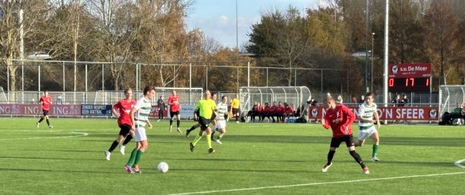 RODA’23 kwam niet in actie. Het duel tegen FC Abcoude staat voor zondag 14 december in de planning. De Meer speelde 2-2 tegen Antibarbari. Onder toeziend oog van Louis van Gaal starte de formatie van Marciano Nonneman heel slecht: na precies 36 seconden (!) lag de 0-1 al achter doelman Dion Boonstra. Uit een fraaie aanval maakte Rivaldo Blijd nog voor rust de gelijkmaker: 1-1. Na rust bleef het duel aantrekkelijk genoeg, De Meer pakte de 2-1 voorsprong (Michael Markes) maar moest kort daarna de 2-2 toestaan.