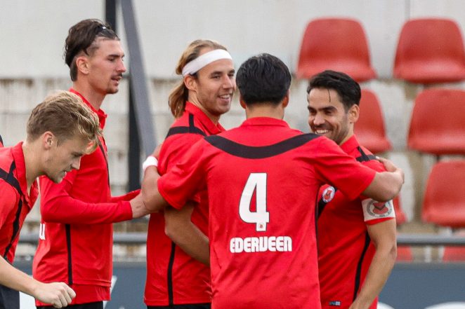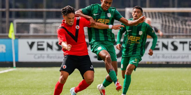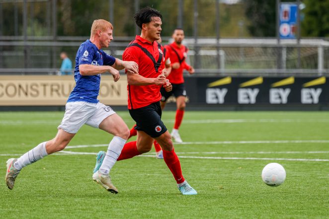 Die ambitie bracht hem bij AFC, maar niet via de hoofdingang. Ederveen begon in de zondag tweede klasse, feitelijk een vriendenteam. “Bij AFC kom je niet zomaar in de selectie, zeker niet zonder BVO-achtergrond. Ik ben letterlijk vanaf nul begonnen.” Via zondag 2 ging Ederveen naar Jong AFC, vervolgens naar zaterdag 1 (Soufiane Hetli, Julian van der Greft, Milan Eliasar waren toen ook ploeggenoten, red.) en uiteindelijk naar de zondagselectie. “Ik zat er lang tussenin, we mochten oefenduels spelen en op maandag meetrainen.” Een lange route, waarin geduld en doorzetten belangrijk was.