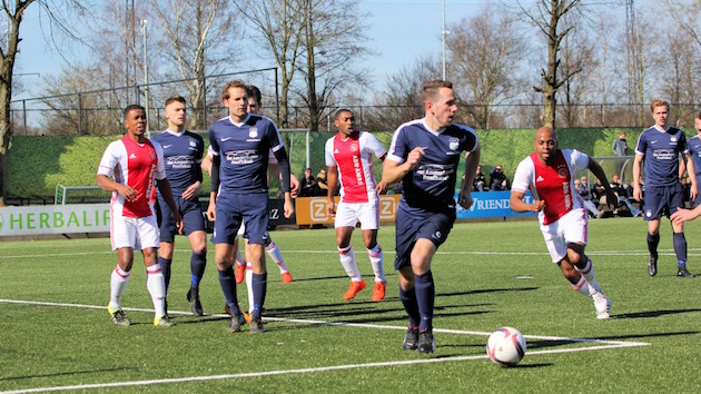Dat het uiteindelijk 0-5 werd, was geflatteerd. In de laatste tien minuten voor rust liet Ajax drie opgelegde kansen liggen (Van Moerkerk, Kharchouch en Akoy) en ook direct na de hervatting had het moeten scoren. Vooral Van Moerkerk liet een unieke kans liggen. Voor een zo goed als leeg doel schoot hij van dichtbij tegen de rug van Nik Gabel aan. Swift was een stuk zekerder in de afronding. Door twee doelpunten van Jaap Smeeing (weer in een tijdsbestek van twee minuten) stond het in de 66ste minuut ineens 0-4. In de laatste minuut zorgde Dennis Dinkgreve vanaf elf meter (Hazelaar had Munsterman onderuit gehaald) nog voor de 0-5.