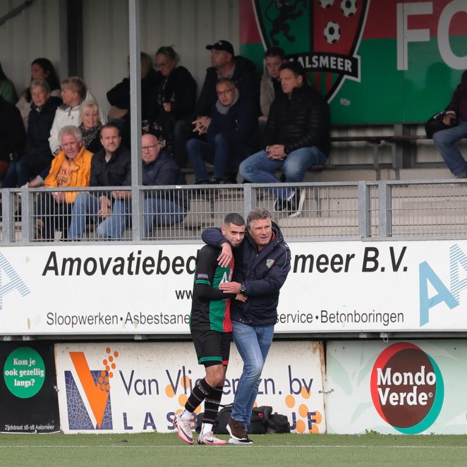 Als speler lag zijn hart bij EDO, waar hij het eerste haalde en zo’n 250 wedstrijden speelde. Toch kende hij ook Aalsmeer van binnenuit. Op jonge leeftijd speelde hij er, mede omdat hij destijds werkzaam was op de bloemenveiling. “Het was geen romantisch thuiskomen,” benadrukt hij. “Natuurlijk kende ik mensen, maar dat was voor mij niet doorslaggevend. Wat mij aantrekt, zijn uitdagingen. En Aalsmeer was in 2021 een serieuze uitdaging.” Toen Verdonkschot in de zomer van 2021 instapte bij FC Aalsmeer, bevond de club zich sportief op een laag punt. “Het was eerlijk gezegd een allegaartje,” zegt hij zonder omwegen. “Er zat weinig structuur in. Spelers kwamen en gingen. Er was talent, maar nauwelijks richting.” Na de coronaperiode werd hij door meerdere clubs benaderd, maar geen enkel ‘project’ sprak hem echt aan. Totdat Peter Freke – oud-speler onder Verdonkschot bij Rijnsburgse Boys en inmiddels betrokken bij het selectiebeleid in Aalsmeer – contact opnam. “Hij vertelde dat er een plan lag. Dat ze serieus wilden bouwen. Toen ik met de technische mensen sprak, begon het te leven bij me. Ik dacht: dit is een club die hoger kan, misschien zelfs moet.”