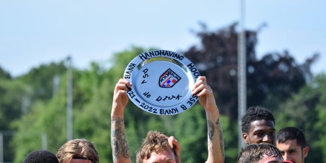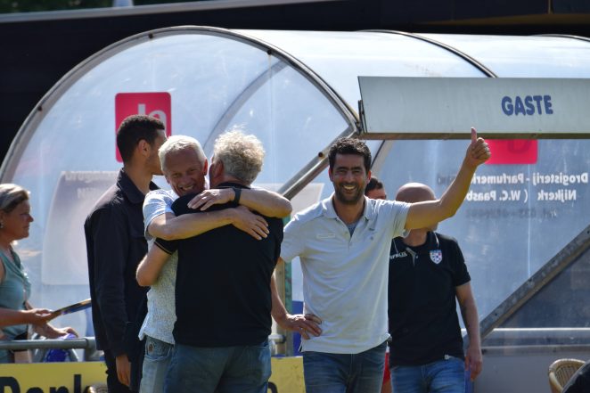 Na het laatste fluitsignaal bij NSC Nijkerk – De Dijk waren er bij Andre Teuling nog even twijfels. Is het 1-1 gelijkspel voldoende voor directe handhaving in de Hoofdklasse of is het toch nog stuivertje wisselen met SDC Putten? De Puttenaren gingen met 3-1 onderuit bij Eemdijk en dat kwam ook door in Nijkerk. Juichende Amsterdammers en een blije Andre Teuling, de oefenmeester van De Dijk. “Ik ben super trots op deze hele jonge groep. Dat ze zich op dit niveau hebben weten te handhaven, met alle druk die daarbij komt kijken. Helemaal in de eindfase van de competitie, vorige week tegen Swift en dit weekend tegen NSC Nijkerk.”