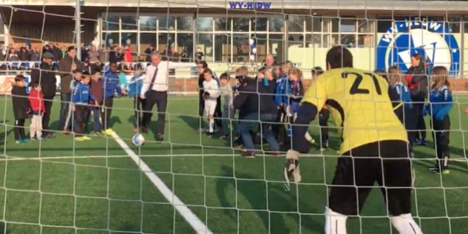 Het nieuwe hoofdveld van WV-HEDW werd woensdagmiddag geopend door Eric van der Burg. Dit deed de Wethouder Sport in stijl door een strafschop binnen te schieten. Hij liet zien over een aardige trap te beschikken en schoot de bal hard en dwars door het midden binnen te schieten. De vergelijking met Johan Neeskens, tijdens het WK 1974, werd snel gemaakt.