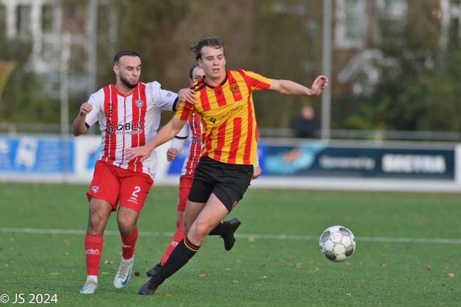 Martinus heeft wel wat kwaliteiten ingeleverd door het vertrek van onder andere Broos Krijger (Noordwijk) en Michael Mol (FC Aalsmeer). ,,We moesten vooral weer even wennen aan elkaar in de voorbereiding, met wat nieuwe jongens in de groep. We kregen ook vrij veel blessures. Persoonlijk ben ik altijd vrij fit, maar ook ik had wel wat last van pijntjes. Dat leidde tot goede en minder goede wedstrijden, al merk ik wel dat wij er steeds beter in groeien. Het goede gevoel overheerst. Afgelopen weekend speelden wij met een compleet nieuwe voorhoede ten opzichte van vorig seizoen. Sem van Bruggen, Max Musch en Max van der Heijden waren bijvoorbeeld nog niet fit, Anthony Dean is gestopt zoals bekend en de nieuwe jongens zoals Chevaz Levante en Ahmet Celik moeten ingepast worden. Ik vind dat dit al behoorlijk gaat. Sterker, ze zijn gelijk belangrijk geweest. Met Bo de Bruijn hebben we achterin weer een sterke speler erbij, die vangt het vertrek van Mol 1-op-1 op. Bo moet natuurlijk ritme opdoen, maar speelde tegen Vitesse’22 een goede wedstrijd.”