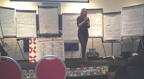 Na de pauze was het de beurt aan de voorzitters en andere clubmensen om in groepjes te werken aan het convenant. Eigenlijk het verlengde van de bijeenkomsten bij de clubs, net na het overlijden van grensrechter Nieuwenhuizen. Op flap-overs werden de resultaten van de groepsgesprekken op het podium doorgenomen. Enkele opvallende punten waren: