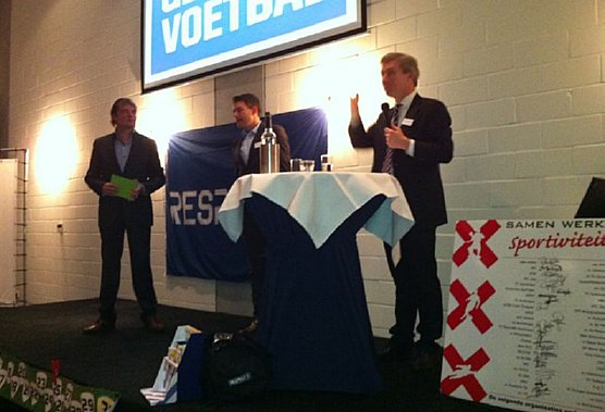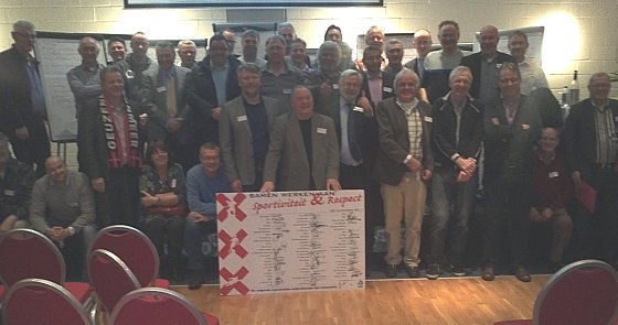 Inzet van de bijeenkomst was het convenant ‘Sportiviteit en respect’. Al snel werd duidelijk dat dit convenant nu door alle clubs is ondertekend, ter geruststelling van de wethouder die had gedreigd met sancties tegen de clubs die niet wilden ondertekenen. Rianne van Zandbergen stelde zich voor namens de KNVB als nieuwe projectleider, aangaande dit onderwerp. De projectleider regio Utrecht presenteerde de Verenigingsbox, een handreiking aan de clubs bij het organiseren van hun kader. Daarna was het de beurt aan Posthumus en van der Burg om dieper in te gaan op de rol van de KNVB en de stad Amsterdam bij de amateurvoetbalclubs. De aanwezigen mochten inhaken bij dit gesprek. Voorzitter Khalid Berdouni was kritisch over de rol van de gemeente bij het sportbeleid, waarna van der Burg beloofde alle inkomende mail te zullen beantwoorden en ook bij de clubs langs te komen, indien nodig. Hierna volgde een korte pauze.