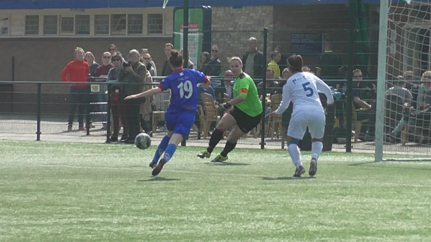 Na een rustig verlopen eerste kwartier werd Buitenveldert met de minuut dreigender. Laura Kelderman nam haar ploeg op sleeptouw en was met het hoofd meerdere keren levensgevaarlijk. Na een kopbal die uit het doel werd getikt en een kopbal die voor de lijn werd weggehaald, opende Kelderman tien minuten voor de rust met het hoofd wel de score. Dit was ook de ruststand. Buitenveldert had genoeg mogelijkheden om de score verder uit te bouwen, maar het bleef bij 1-0.