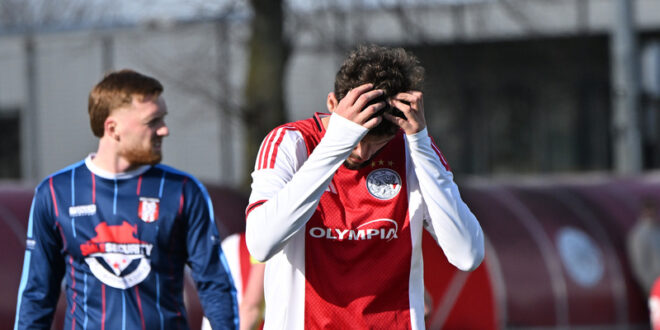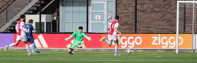 Tegen de verhouding in kreeg Ajax halverwege de eerste helft dé kans om op voorsprong te komen. Rogier Arduin werd in de rug gelopen door Encho Margaritha en de strafschop was onomstreden. Routiner Jarchinio Antonia nam zijn verantwoordelijkheid, maar zag zijn inzet uiteenspatten op de lat.