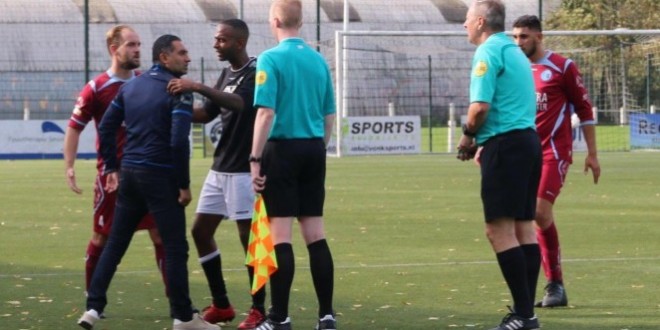 Met tien man konden de Amsterdammers niet meer iets tegenover Zaanlandia zetten. Een kwartier voor tijd kreeg de thuisploeg zelfs een strafschop om verder uit te lopen. “Echt belachelijk. Dit ging helemaal nergens over. Uit frustratie zei mijn assistent iets en moest hij direct vertrekken van de scheidsrechter. Vervolgens was er een klein opstootje. Niet eens tussen beide ploegen, meer richting de scheidsrechter. Hij heeft de wedstrijd direct gestaakt.”