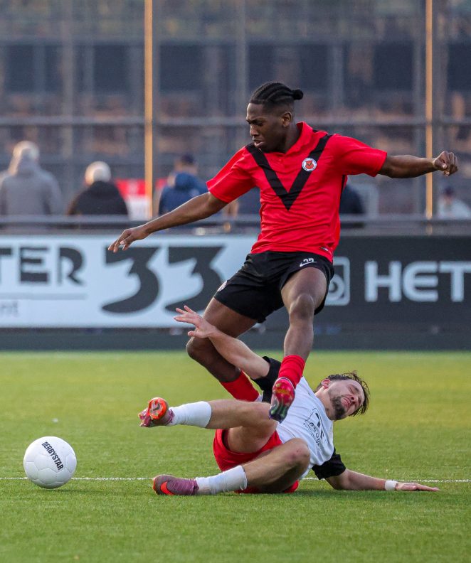 IJsselmeervogels versterkte zich echter vorige week geducht met het aantrekken van Raily Ignacio, inmiddels 38 jaar oud, maar bij AFC nog maar al te bekend van zijn jaren als topschutter bij de Amsterdammers. De inzet van de goalgetter bleef uiteindelijk beperkt tot een invalbeurt van vijfentwintig minuten. Hij liet direct zijn meerwaarde zien als ijzersterk aanspeelpunt én onruststoker. “Oorlog maken,” zo noemde hij zijn inbreng zelf. Het was echter niet genoeg om nog wijziging te brengen in de 1-0-voorsprong van AFC, dat met zichtbare opluchting de drie punten in huis hield.