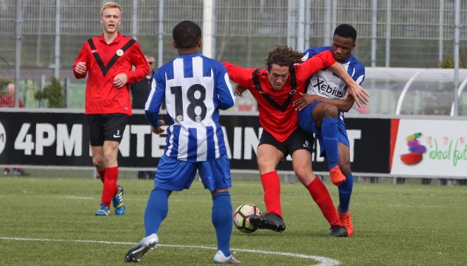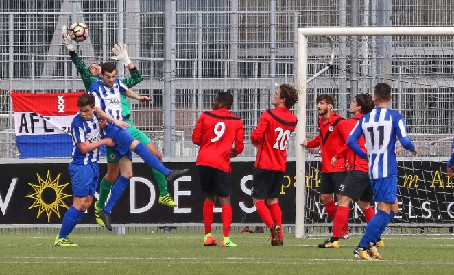 Pas met een achterstand beet AFC van zich af. Deze kwam enkele minuten voor rust tot stand. Een subtiele steekbal zette Dieterich vrij voor Berghuis, die met een zacht rollertje gepasseerd werd: 0-1. In de tweede helft klopte de thuisploeg veelvuldig op de deur van RVVH, die zelden naar binnen werd getrapt. Mauritsio Helstone had het vizier niet op scherp en Floris Dokkum kreeg te weinig kracht achter zijn schot.