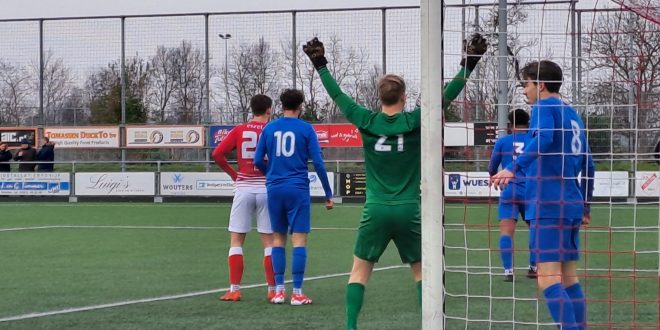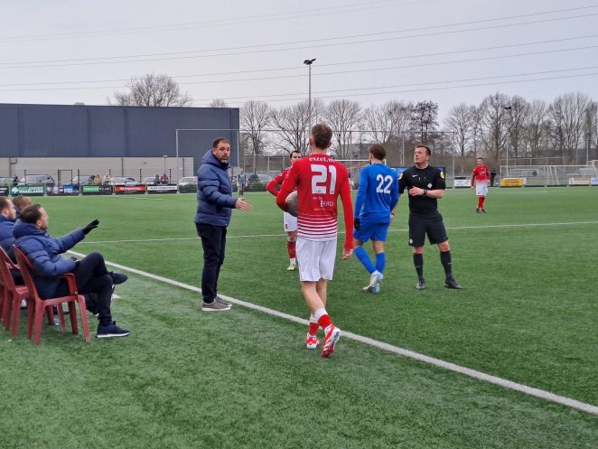 Romello Austin zorgde een kwartier eerder met een intikker voor 0-3, maar toch kon juist hij zichzelf verwijten dat hij de score niet hoger had doen oplopen. Want volkomen vrij voor de doelman plaatste hij een lobje niet binnen de palen. En ook Van Roemburg zag er even niet goed uit, toen hij een strafschop (toegekend wegens hands) door de doelman gekeerd zag worden. Maar goed, het niet verder laten oplopen van de score was het enige wat Giessen uiteindelijk op zijn team had kunnen aanmerken. De aan het eind van het seizoen vertrekkende trainer koos er echter voor om het te houden bij complimenten over het goede veldspel: “Ja, we voetbalden goed, maar niet alleen vandaag hoor, dat gaat al een tijdje zo,” klonk het glunderend. Waarna hij relativerend vervolgde: “Vijftien uit vijf, dat is gewoon sterk. Maar we zijn niet zó goed als het nu door de cijfers lijkt, net zomin als dat we zo slecht waren als het leek toen we in het begin van de tweede periode drie keer op rij verloren. Wat wij moeten doen is blijven winnen, en dan zien we wel waar we uitkomen. Kijk, bij SDC Putten is qua budget alles gericht op het kampioenschap, bij ons ligt dat nu eenmaal anders.” Bekijk hier alle uitslagen, de stand en het komende programma in de Eerste Klasse F
